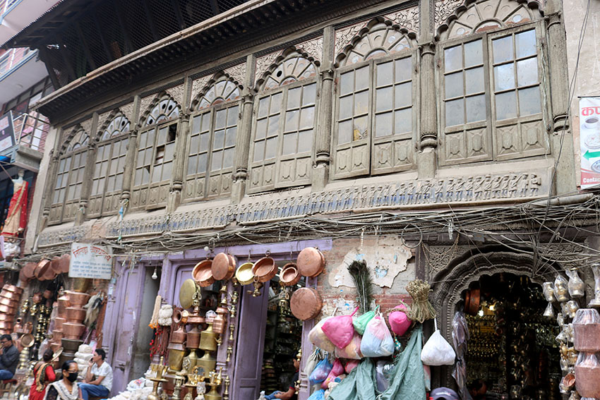 Sorprende la belleza de algunas casas, la arquitectura newari. Sus paredes de ladrillo adornadas con magníficos trabajos de carpintería, en marcos de ventanas y puertas. Las galerías y aleros de tejado son auténticas obras de arte. Me pregunto cómo sería la vieja ciudad hace unos siglos, qué pensarían los primeros ingleses que la visitaron. Intento imaginar las personas vestidas de otra manera, con ropas tradicionales. Quitar el ruido de coches y motos y centrarme, sin conseguirlo demasiado, en la voz de las personas. Los ruidos que salen de los talleres… Cambiar los teléfonos móviles y mercancía moderna del escaparate y sustituirla por cestas, verduras, especies y prendas.